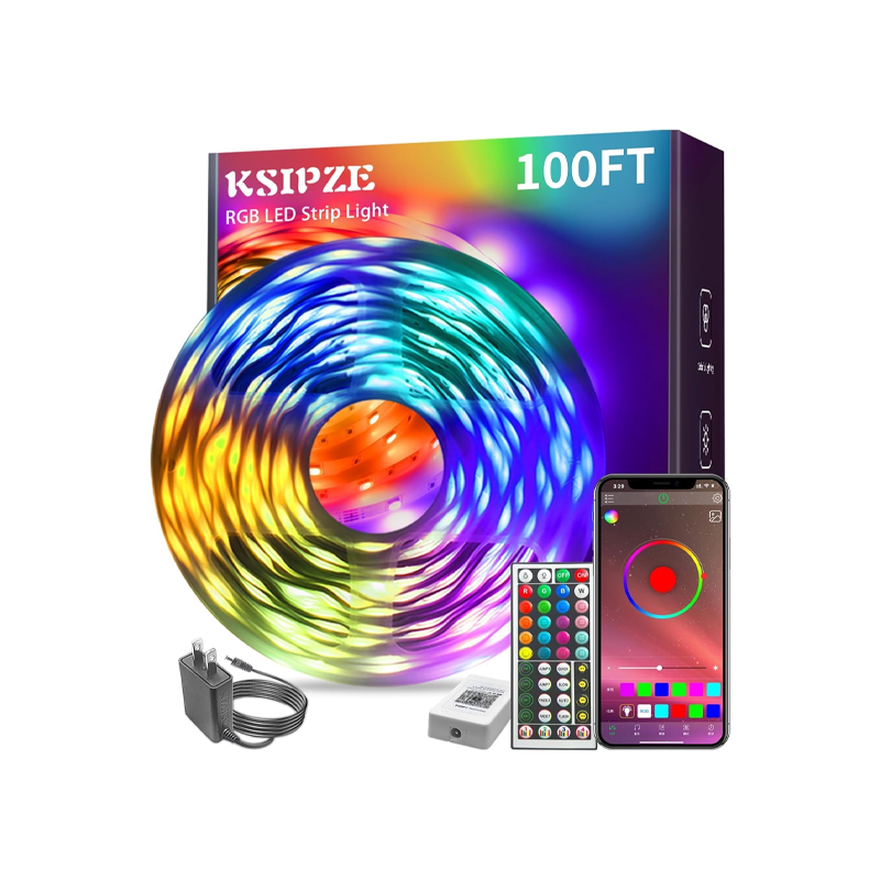 100ft RGB LED Strip Lights with Bluetooth App Control